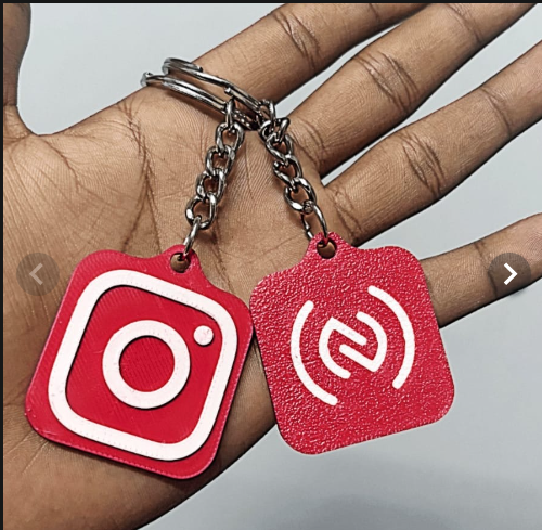 Tags NFC (Near Field Communication) são pequenos chips que permitem a troca de dados por aproximação, como abrir links, compartilhar contatos ou ativar ações no celular. Você pode integrá-los em peças 3D personalizadas para criar porta chaves (chaveiros), cartões, brindes ou objetos interativos com funções digitais.